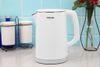 Bình đun siêu tốc Toshiba KT-15DS1PV có kết cấu chắc chắn từ bên trong cho tới bên ngoài. Thân vỏ 2 lớp cách nhiệt chống bỏng được làm từ nhựa PP cao cấp không chứa BPA. Người dùng khi cầm nắm hay di chuyển không bị bỏng, nóng.