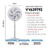 Quạt Đứng Asiavina Turbo Plus VY639792 - ( Xám ) / VY639892 ( Đen ) - 90W (New 2025)